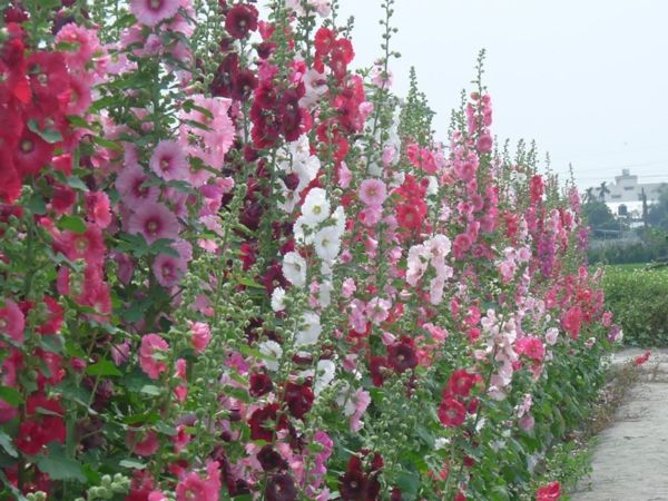 蜀葵花田,有如置身在一片花海的美景中,令人陶醉。